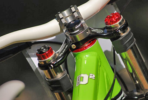 Ghidon uşor cu înălţare mică. Eterna problemă, să nu fie prea înaltă faţa bicicletei a fost motivul alegerii acestui ghidon, care nu este suficient de lung pentru o biţă DH, dar cu un accesoriu special am rezolvat problema şi am ajuns la o lungime de 73 cm.